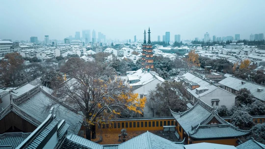 下起來(lái)羞羞答答,附著在亭臺(tái)樓閣上