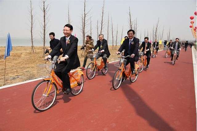 圖 參加儀式的領(lǐng)導(dǎo)體驗(yàn)公共自行車