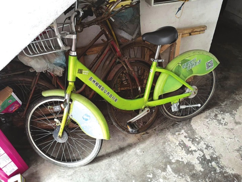 家住吳中區(qū)水香六村的劉阿姨發(fā)現(xiàn),自家單元樓道內(nèi)不知道什么時候多了一輛公共自行車。這輛“小綠車”就這么擱著好多天了,劉阿姨心想:這該不會是被誰“偷”了擺在這里的吧?