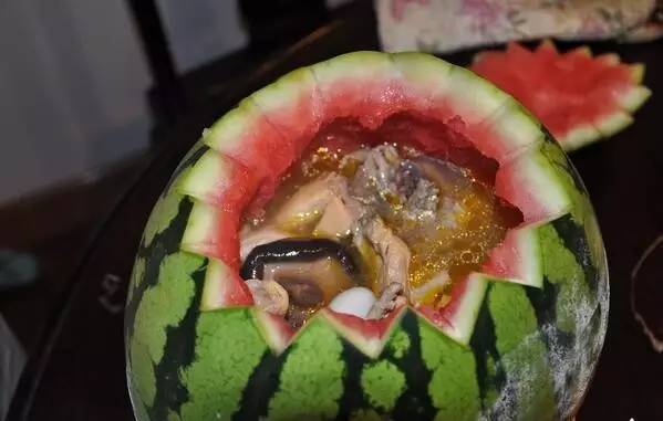西瓜雞曾在蘇州當(dāng)?shù)爻掷m(xù)風(fēng)靡四五十年,因著只能在夏天吃,且必須當(dāng)天烹煮當(dāng)天吃,不能貯存又無法攜帶,因此知道的人還真不那么多。西瓜與母雞共蒸,瓜的清香滲入雞肉,雞肉又能保持原有的鮮嫩,考究點的店家還會在西瓜皮上雕圖刻畫,極富美味與觀賞性。